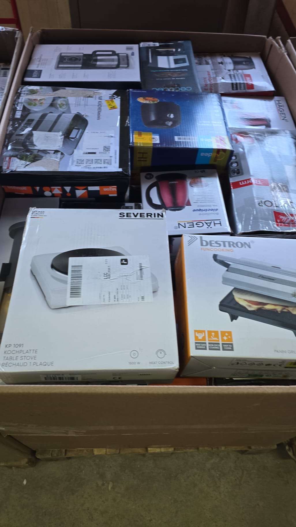 Paleti Amazon Prime retur cu produse noi si resigilate, in general din categoria electrocasnice . Dimensiuni paleti 80x120x80 cm. Produsele sunt gama retur deci nu beneficiaza de returnare sau garantie.